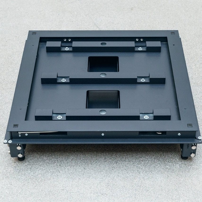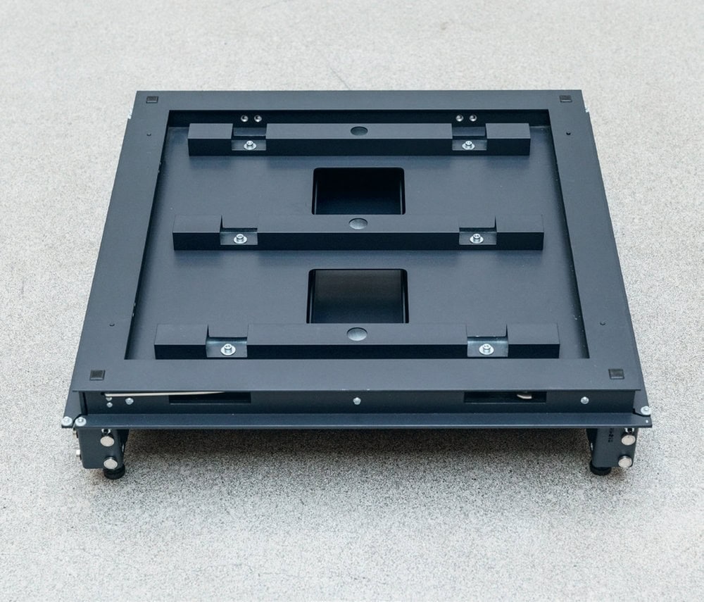Unabhängige Elektrik-Module mit manuellem Dimmer; Technikfach im Bodenbereich über abnehmbaren Sockel ohne Türöffnung zugänglich.